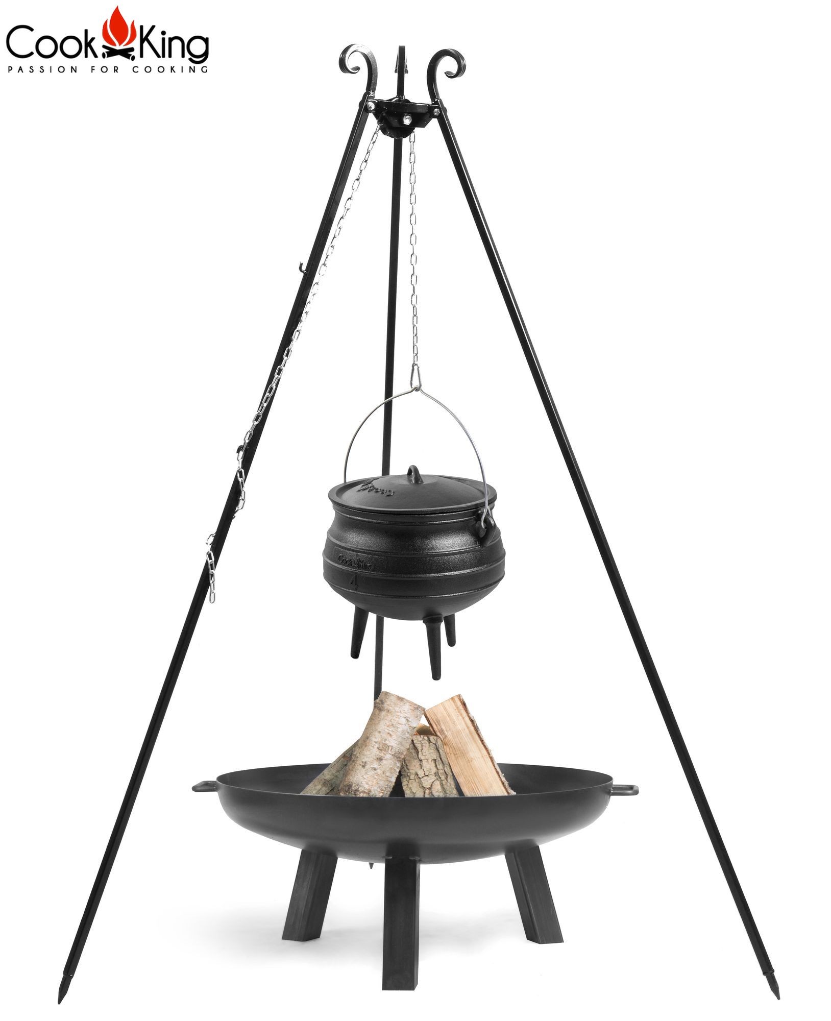 Für ein schnelles Grillerlebnis sind Dreibeiner ideal geeignet. Einfach den Wok bzw. Pfanne über die Feuerstelle hängen und schon kann die Gartenparty steigen. Durch die verstellbare Höhe des Woks/Pfanne hat man absolute Kontrolle über den Hitzegrad. Außerdem besteht eine geringe Wahrscheinlichkeit für das Anbrennen durch die Bewegung des Woks/Pfanne. Als Feuerstelle eignen sich besonders unsere Feuerschalen, in denen sowohl mit Holzkohle, als auch für ein besonderes Aroma mit Holz, Feuer gemacht werden kann.